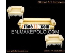 Item Description: Indian Carved Couch intraditional style made of white metal (German Silver) and teakwoodcarving 3 piece sofa set with floral design in yellow cushionfabric.