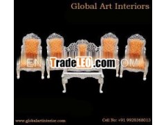 Hand Crafted Sofa set in traditional style made of white metal andteakwood carving 3 piece sofa set with lion and floral designProduct Name: Hand Crafted Sofa Set