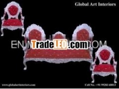 Item Description : Contemporary sofa sets made ofwhite metal (German Silver) and teak wood hand carved in Victorianstyle including one silver sofa 3 seater and 2 silver sofa chairs(total 3 piece set) with red cushion fabric.