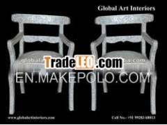 Item Description: White Arm Chair in Traditional Indian style madeof mother of pearl mounted on wooden handicraft with floraldesign.