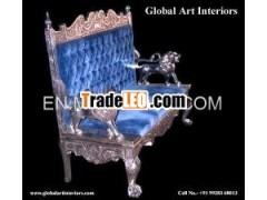 Item Description : Indian Handicraft Furniture made of whitemetal (German Silver) mounted on teak wood in floral design withblue cushion fabric.
