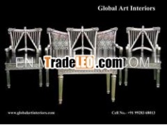 Sofa table sets made of white metal and teak wood hand carved inRoman style including one sofa, two chairs & one table.Product Name: Sofa Table Sets